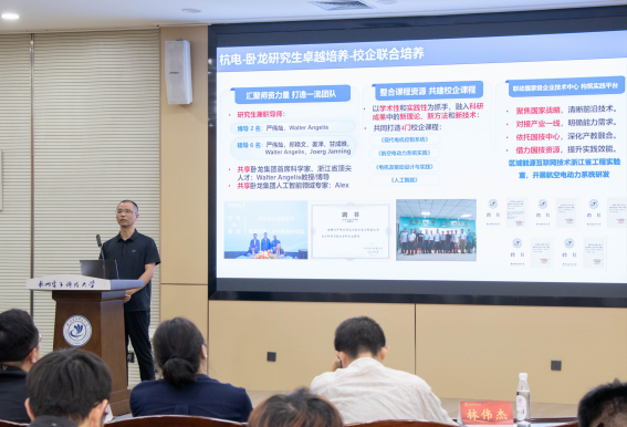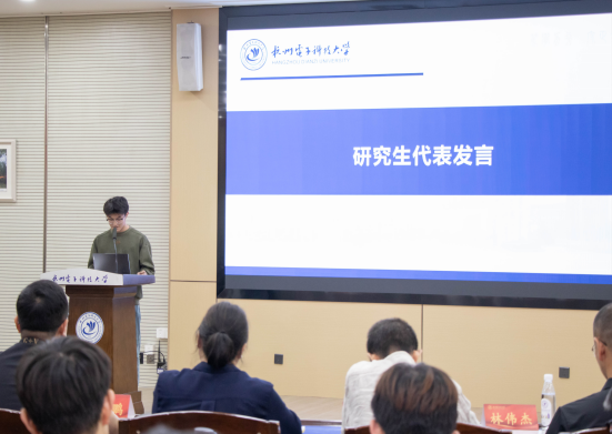 紧接着,三位企业导师代表发言。代表人工智能健康医疗工程方向的陈翔院长表示,自2022年与杭电共建智慧医疗研究中心以来,校企合作成果丰硕,希望研究生成为医学与工科的桥梁,将技术创新转化为临床应用,服务民生。代表空天地一体化的智能农业关键技术方向的胡少鹏执行院长诚挚邀请青年学子参与研究院的空天遥感与人工智能融合的前沿科研与产业实践。代表电动航空电推进系统方向的秦晓燕副院长回顾了与杭电的长期合作历程,强调双方在科研创新和人才培养上的紧密协作,并期待通过卓越培养项目进一步培养高水平工程技术人才。