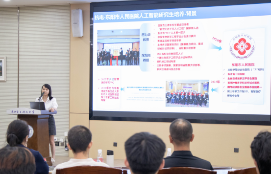 (从左至右分别为东阳市人民医院院长陈翔、中科空天数字研究院执行院长胡少鹏、卧龙集团管理学院副院长秦晓燕)