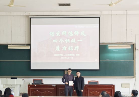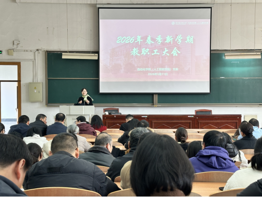 春启新程,奋楫扬帆。为全面部署2026年春季学期各项工作,凝聚奋进力量、明晰发展方向,3月11日下午,自动化学院(人工智能学院)在第6教研楼中129教室召开2026年春季新学期全体教职工大会。会议周密部署新学期重点任务,为学院高质量发展擘画新蓝图。学院党委书记袁秀川主持会议,学院领导班子成员及全体教职工参会。