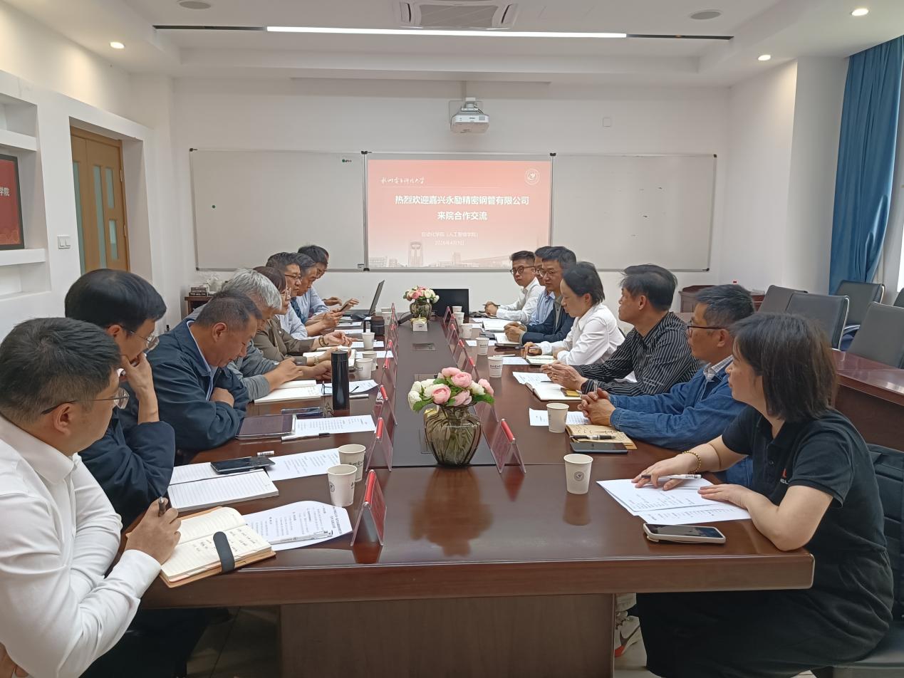 自动化学院(人工智能学院)党委书记袁秀川对嘉兴永励精密钢管有限公司一行的到访表示热烈欢迎。她指出,学院立足实业,积极推动人工智能赋能地方产业发展,未来可通过“企业提需求、学校揭榜挂帅”的成果转化模式,深化校企合作,精准输送紧缺人才。